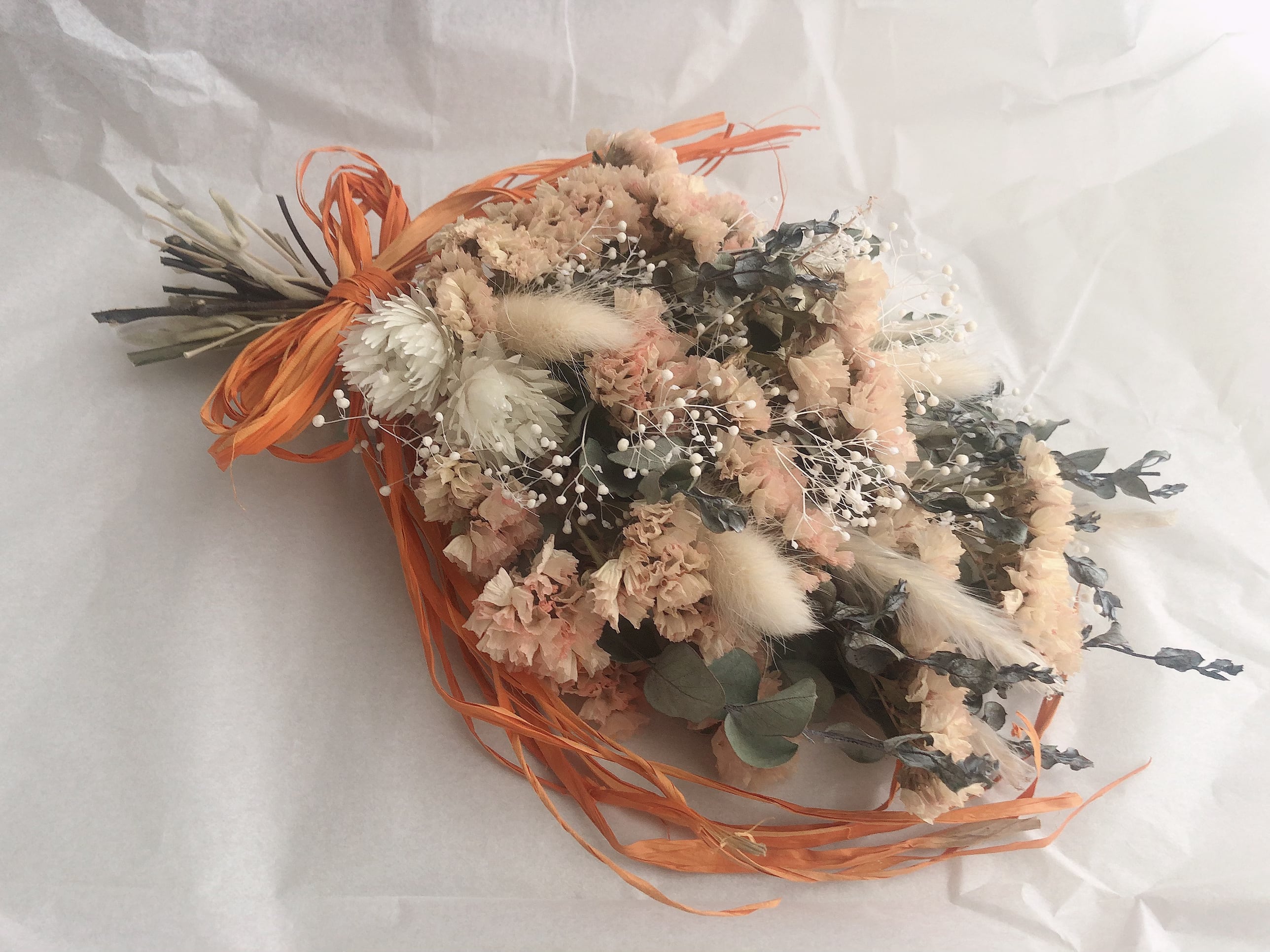 ドライフラワーやプリザーブドフラワー、もしくはそのままドライになる素材を使用しますので、お手入れいらずで長い期間楽しむことができます。